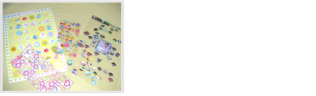 シールは毎回レッスンノートや出席カード、ノートで100点取ったりしたときに