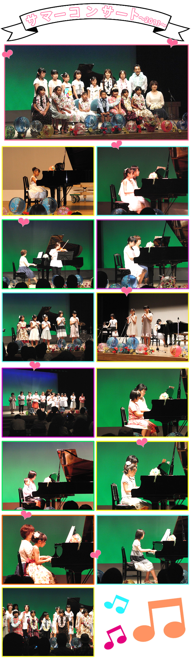 このサマーコンサートを機に新たな気持ちで又楽しくピアノの練習にはげんでほしいし、ピアノ以外の音楽にも興味をもってほしいですね♫