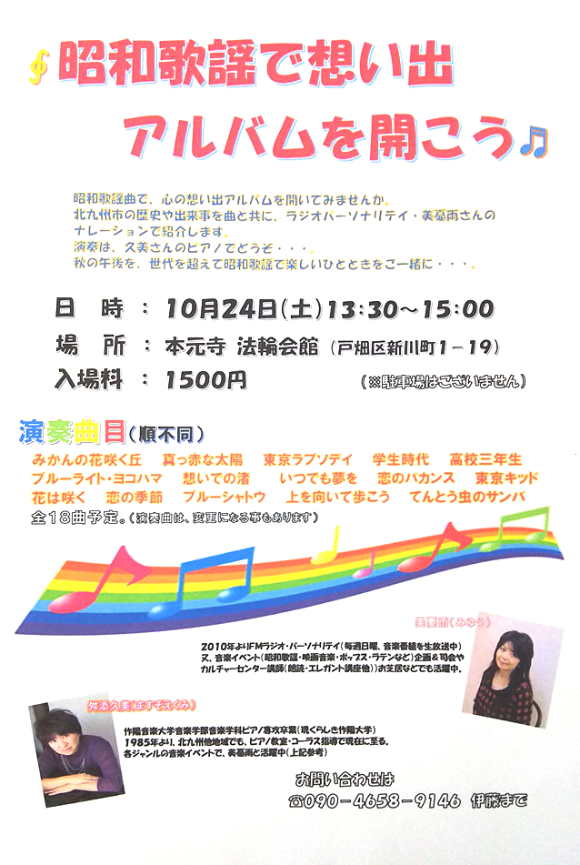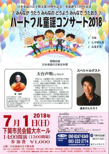 3月30日下関にてハートフル童謡コンサートを行います。